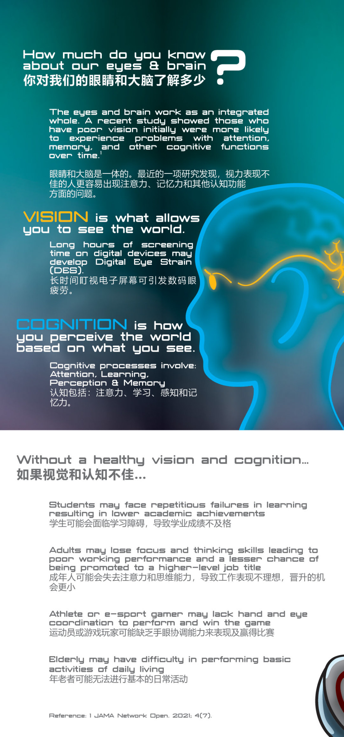 The eyes and brain work as an integrated whole. A recent study showed those who have poor vision initially were more likely to experience problems with attention, memory, and other cognitive functions over time.