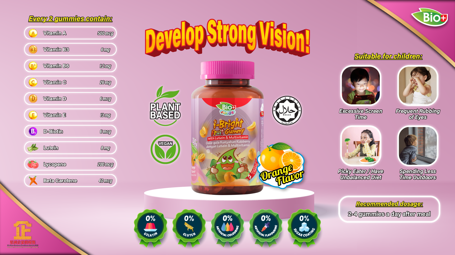 Although it is helpful towards a kid's development, it could also be detrimental to their eyes. Bio+ Junior i-Bright Fruit Gummy is a special formulation for children eyes and visions.