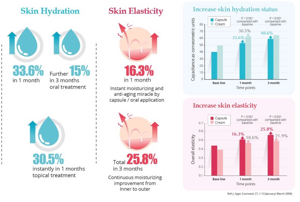 - Boosts skin elasticity and hydration