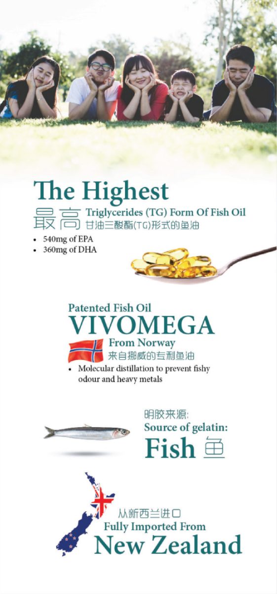 • Highest TG form (EPA 540mg, DHA 360mg) with Vitamin D3